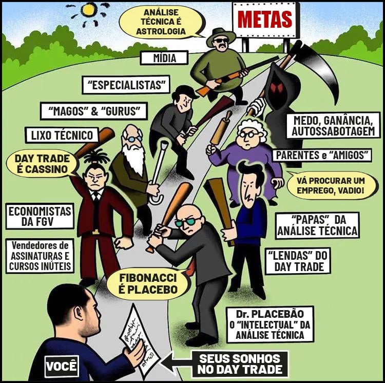 Pare de alimentar e enriquecer os abutres vendedores de cursos e assinaturas mensais inúteis. “Gurus”, "lendas", "papas", magos", "especialistas" e "intelectuais" do day trade e da análise técnica que vivem pendurados nas redes sociais fazendo autopromoção para vender mentiras não entendem p*rr@ nenhuma da verdadeira Análise Técnica e não conseguem ganhar dinheiro operando day trade usando o lixo técnico que empurram pra você. Chega de tanta picaretagem, enganação e incompetência!