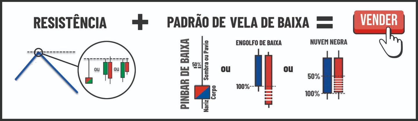 O preço do café atingiu seu alvo “na mosca”, como vimos na figura 3. E o que acontecerá agora? Você concorda com os idiotas de plantão que saem por aí dizendo que “Day Trade é cassino, Análise Técnica é astrologia e a variação dos preços de qualquer ativo financeiro é totalmente aleatória e imprevisível”? Pois bem, vamos calar de uma vez por todas a boca desses incompetentes que falam tanta porcaria. Você pode perceber claramente na figura 4 abaixo que após o preço atingir o alvo na forte resistência do topo do canal (ponto 5) foi formado um belíssimo pinbar de baixa. Ora, caro leitor, você já deve ter aprendido neste capítulo a prever com grande probabilidade o que vair acontecer, não é mesmo? O preço passou a cair a partir do ponto 5, mas não porque começou a chover nas plantações e a produção aumentou. Também não caiu porque a temperatura deu uma trégua para uma boa floração do café. Também não houve uma intervenção de Jesus Cristo nem Alá para que o preço caísse. O preço caiu porque a Análise Técnica ordenou, caiu porque os algoritmos dos big players que movem os mercados financeiros são programados com a verdadeira Análise Técnica e quando o preço chegou ao ponto 5 (topo do canal) os algoritmos executaram automaticamente zilhões de ordens de venda “obedecendo” a equação abaixo, e forçando o preço do café no mercado internacional a inverter e cair, ou melhor, desabar! Aceita que dói menos!
